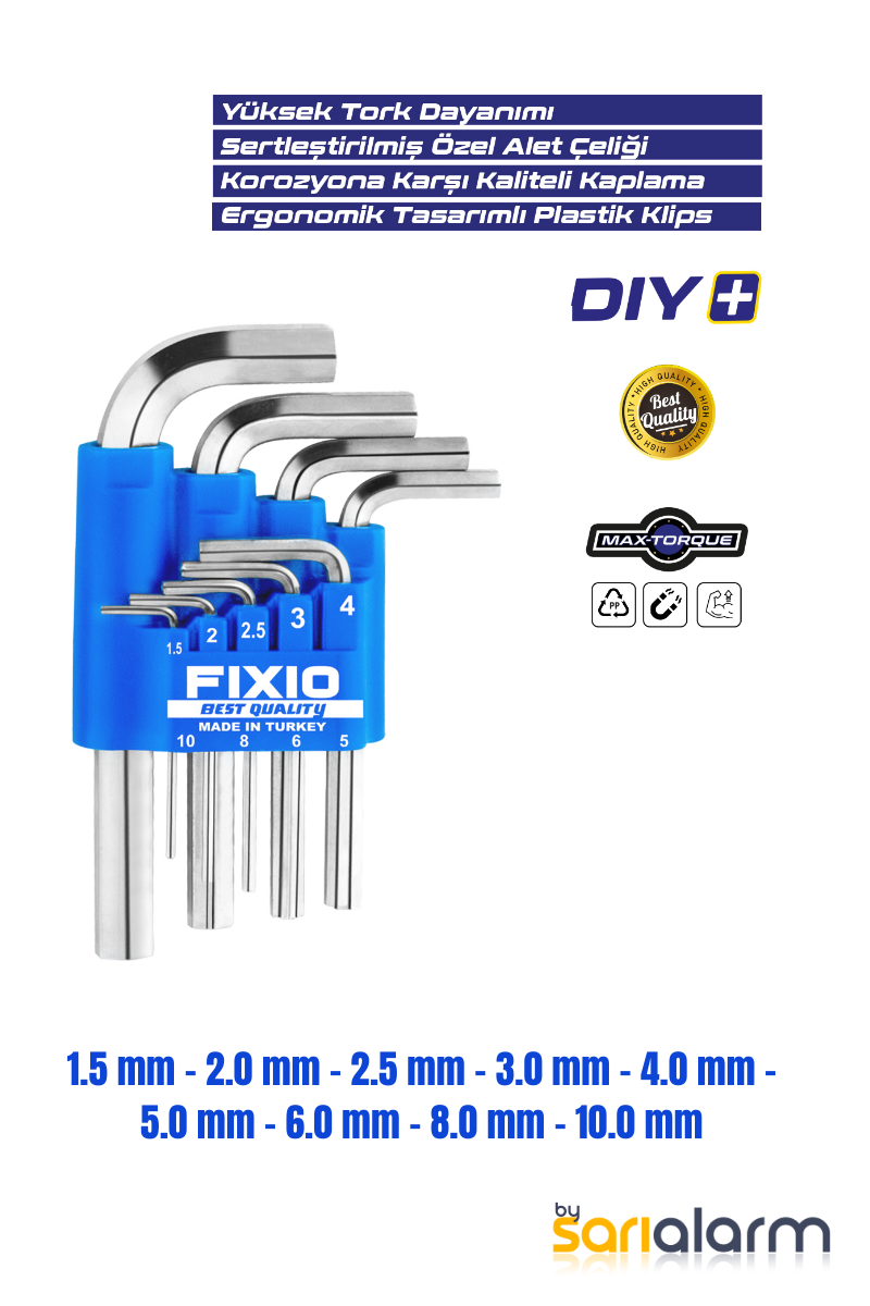 Etiketler: 9 Parça Allen, Allen anahtar, el aletleri, Fixio, Hırdavat Malzemeleri, Kısa Allen Takımı, L Anahtar, Mekanik El Aletleri, tamir seti