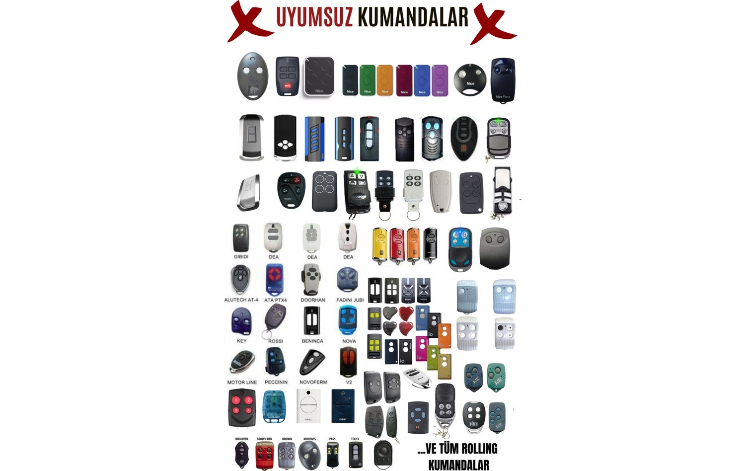 Bft, Nice , Hiland, Faac, Kontal ( Rolan) (Egeteta vb) ve resimdeki tüm rolling sistem uymayan modeller